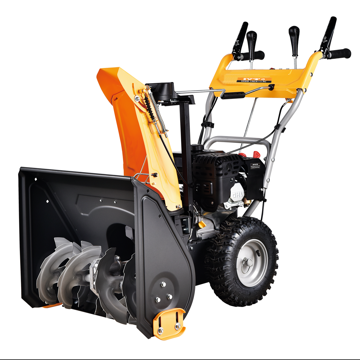 Самоходная снегоуборочная машина SNWB-196(4+1)RC предназначена для уборки небольших территорий от снега. Зубчатый шнек хорошо справляется со слежавшимся снегом. Установлен 4-х тактный двигатель мощностью 6,5 л.с с воздушным охлаждением. Пластиковый желоб регулируется в ручную. Выброс снега до 11 метров. Машина имеет 4 скорости вперед/ 1 скорость назад, что позволяет выбрать режим в зависимости от плотности снега. В комплекте есть лопатка для очистки корпуса от обледенения.