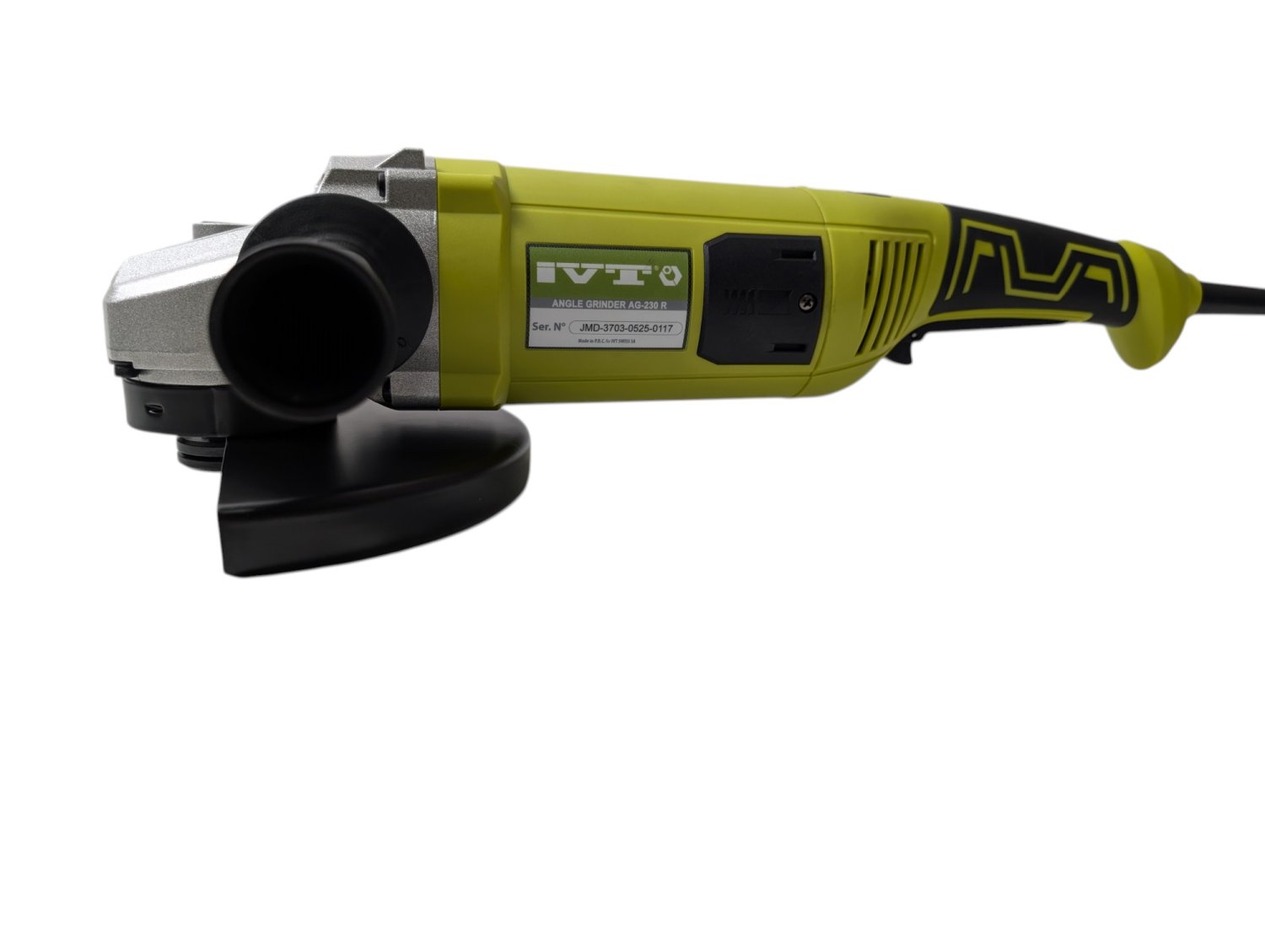 Углошлифовальная машина AG-230R с мощным двигателем 2400 Вт имеет хороший запас по мощности и ресурсу, предназначена для резки и шлифовки различных материалов. Для удобства в комплекте идёт дополнительная трёхпозиционная рукоятка. С функцией фиксатора шпинделя можно быстро менять оснастку. Защитный кожух оберегает оператора во время работы от случайного касания диска, а также от попадания искр и строительной пыли.