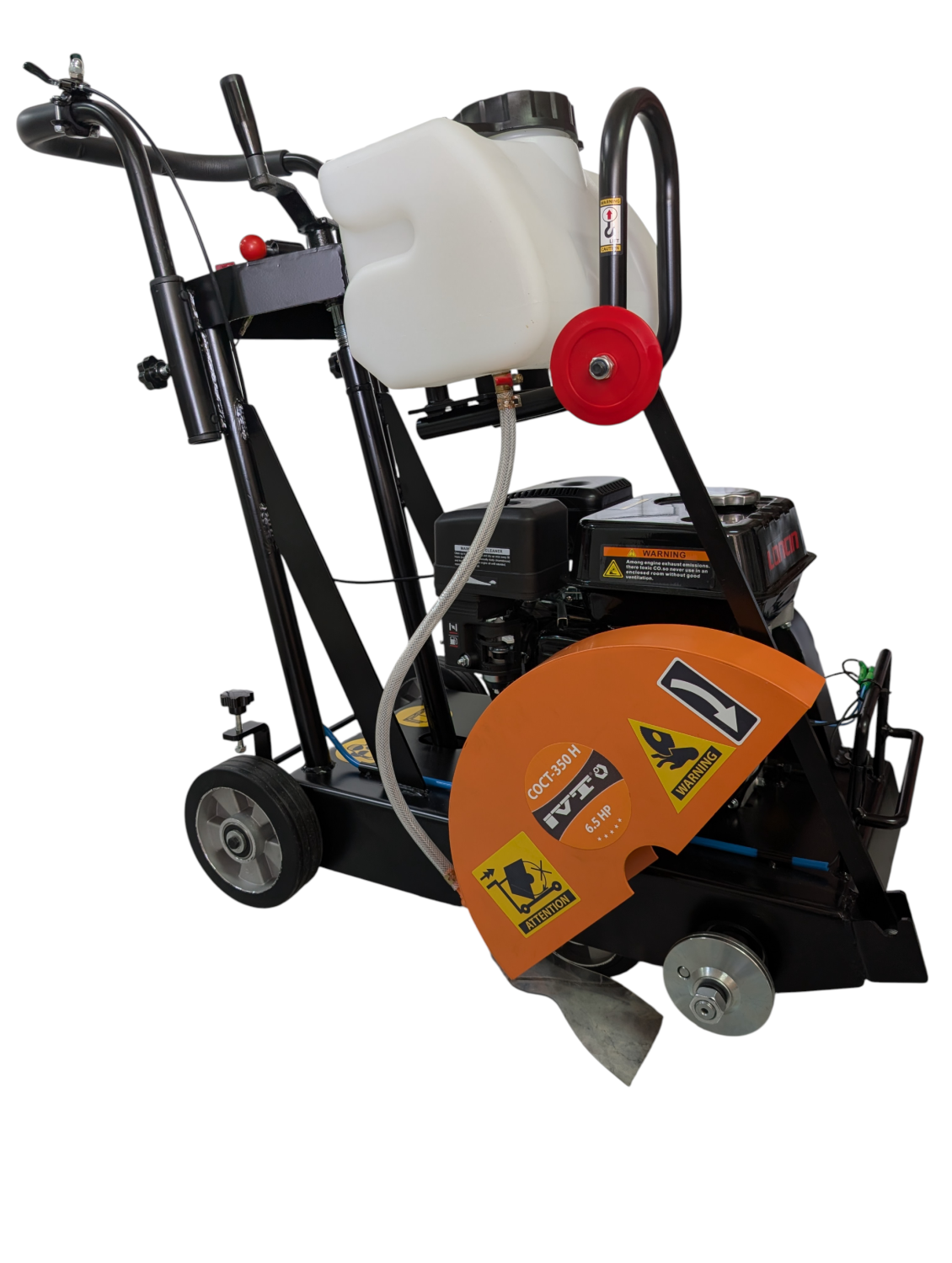 Бензиновый резчик по бетону COCT-Q350H применяется при дорожных ремонтных и строительных работах для выполнения технологических проемов в бетоне, асфальте, железобетоне и камне, а также в других сверхтвердых напольных поверхностях на глубину до 80 мм при помощи алмазного диска диаметром 350 мм.